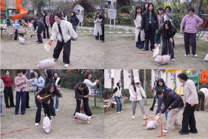 下午趣味游园活动正式开启,赶猪入笼、KT 板套圈、滚滚乐等经典游戏依次亮相,趣味十足的玩法吸引了全体女教职工踊跃参与。大家结伴组队、相互协作,在一个个妙趣横生的游戏中重拾童年乐趣,尽情享受节日的欢乐。