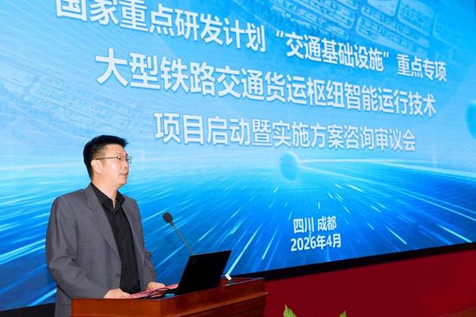 近日,国家重点研发计划“大型铁路交通货运枢纽智能运行技术”项目启动暨实施方案咨询审议会在蓉召开。西南交通大学校长闫学东,交通运输部科技司科技创新发展处四级调研员张鹏浩,国家铁路局科技与法制司科技管理处一级调研员刘晓冬出席会议,西南交通大学科学技术发展研究院院长陈民武主持会议。该项目由学校刘晓波教授牵头承担,近日获批立项,标志着学校在铁路货运枢纽智能化领域的科研实力与影响力迈上新台阶。