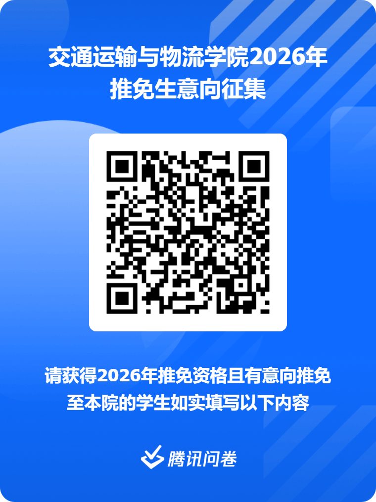 1.意向征集工作通过我院提供的网址或二维码完成,填报申请“西南交通大学交通运输与物流学院2026年推免生意向征集表”,并加入QQ群:1051172404。