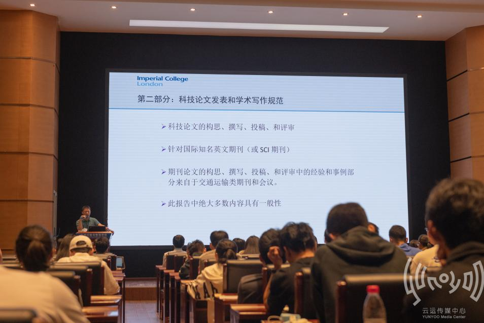 韩科教授担任国际期刊 《Networks and Spatial Economics》 领域编辑,《交通运输工程与信息学报》副主编,交通领域顶级期刊《TR-Part B》和 《TR-Part C》编委,《TR-Part C》、IEEE ITSC、TRISTAN、CICTP、CTS等多个国际期刊和会议的客座编辑和科委会成员。作为资深学术期刊编辑的他倾囊相授,在讲座后半部分他分享了大量实用的写作规范,从“典型的文章组织”到“期刊的审稿流程”,让同学们了解到一篇文章从构思到出版的整个流程。