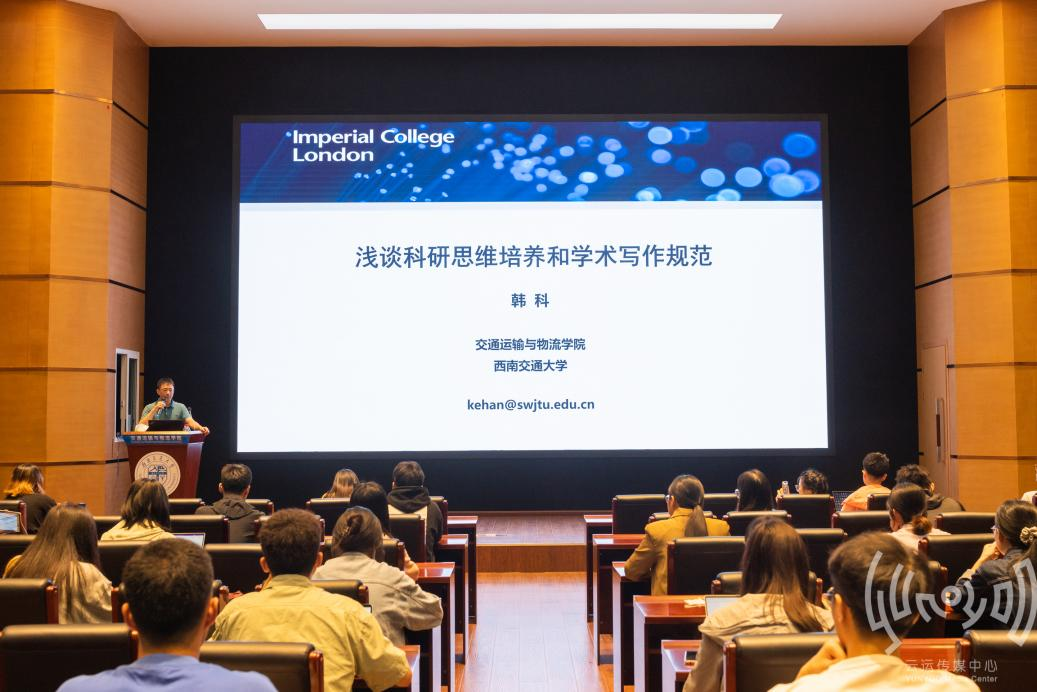 交通运输与物流学院创源大讲堂“喜迎二十大 ,“交”出新答卷,服务国家战略,建设交通强国”系列讲座的第四讲暨学院青年教师学术论坛第一讲开讲,邀请交通运输与物流学院副院长、教授、博导,系统科学学科带头人,系统科学与系统工程研究所(ISSE)所长韩科教授主讲,主题为“浅谈科研思维培养和学术写作规范”。本次讲座由交通运输与物流学院学生工作组、交通运输与物流学院工会、交通运输与物流学院学生支持办公室主办,交通运输与物流学院2021级硕士2班、交通运输与物流学院研究生会承办,旨在促进青年教师的学术交流,促进学科融合发展。学院2021级研究生和部分本科生参加本次讲座。